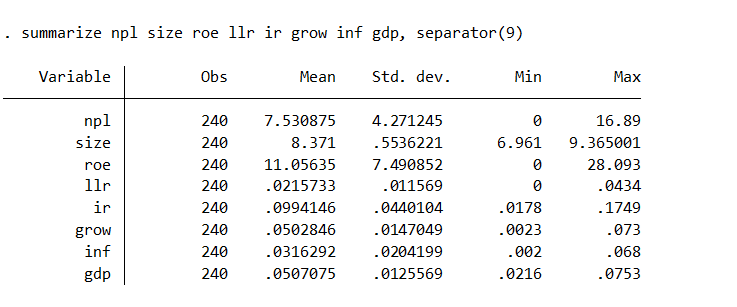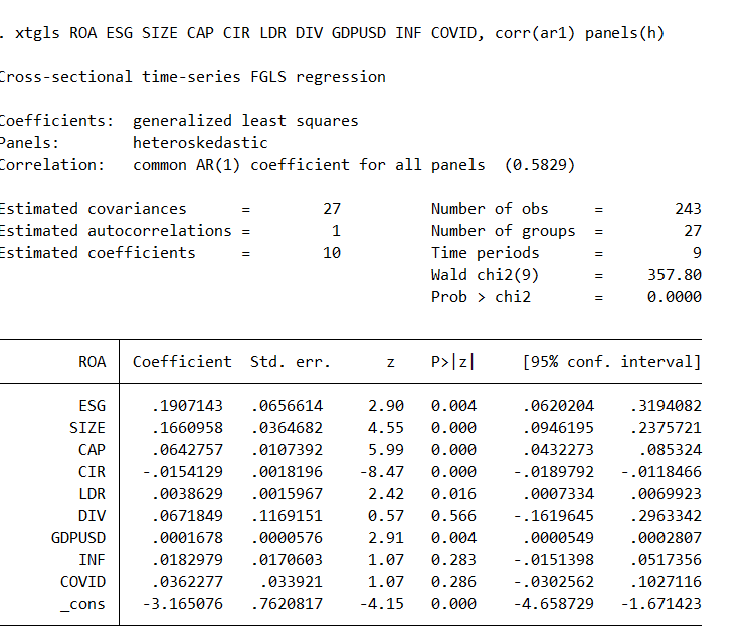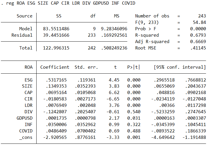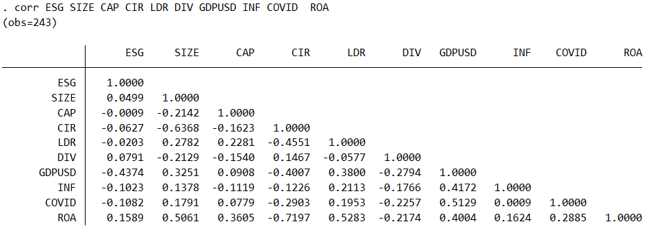 Biến phụ thuộc NPL; Biến độc lập: ESG SIZE CAP CIR LDR DIV GDPUSD INF COVID