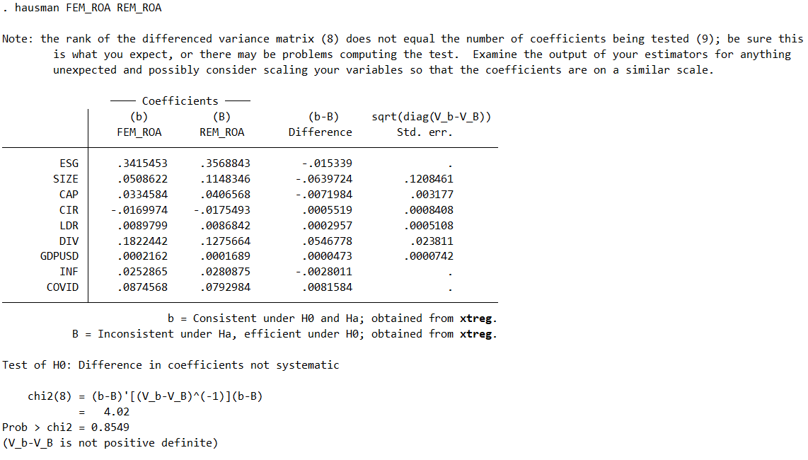 Bước 6: Hausman test (LỰA CHỌN MÔ HÌNH FEM/REM)