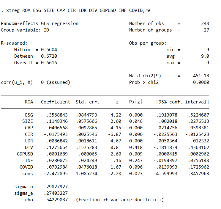 Chạy hồi quy REM bằng câu lệnh: xtreg Y X1-Xn, re