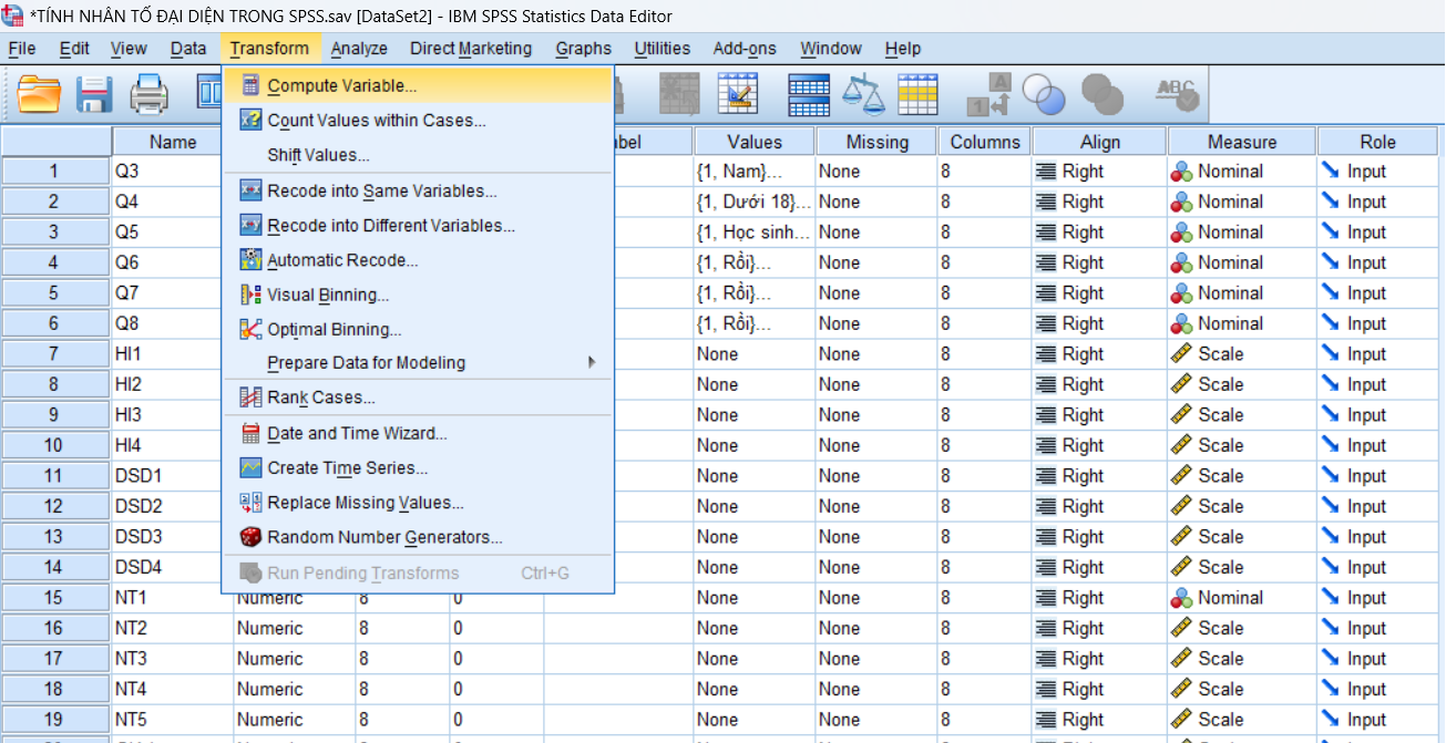 Bài viết dưới đây sẽ trình bày hai cách tính Transform và EFA để giá trị trung bình trong SPSS.