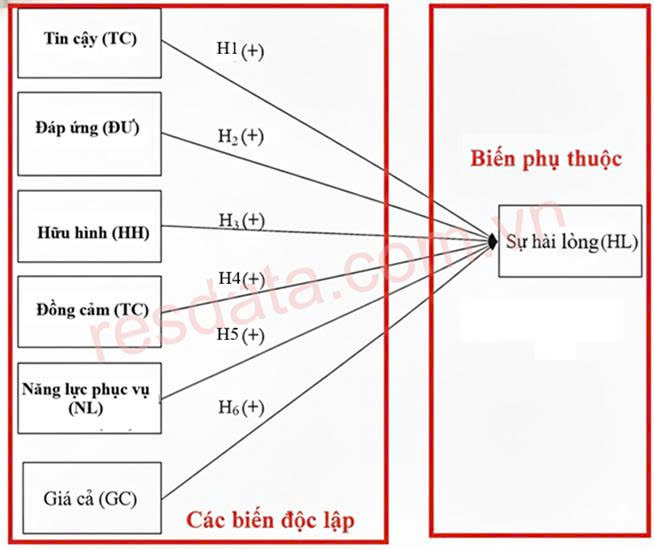 Khi các yếu tố Tin cậy, Đáp ứng, Đồng cảm, Năng lực và Giá cả tăng lên thì sự hài lòng của khách hàng cũng tăng tương ứng, trong khi yếu tố Hữu hình không chứng minh được vai trò tác động trong mô hình nghiên cứu.