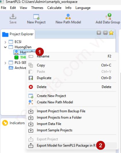 Chuột phải vào tên project → chọn Export Model for SemPLS Package in R.