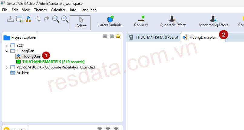 Sau khi hoàn tất, bạn nhấn OK để SmartPLS 3 tạo file dự án mới và chuyển sang giao diện làm việc chính.