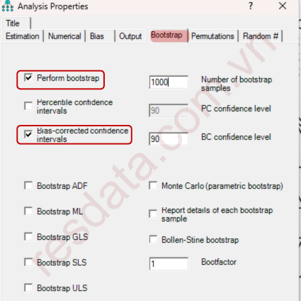 Bước 2: Thiết lập Bootstrap trong AMOS