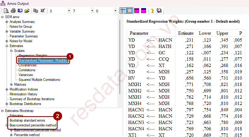 2. Quy trình kiểm định Bootstrap trong AMOS