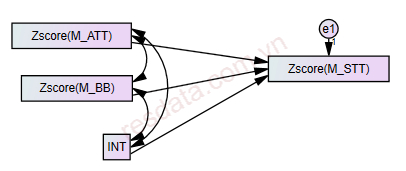 Do việc tạo biến tương tác ATT × BB có thể gây ra đa cộng tuyến với ATT hoặc BB, nên hai biến này cần được chuẩn hóa (standardized value) trước khi nhân với nhau. Trong phần thực hành này, chúng ta sử dụng kỹ thuật chuẩn hóa Z-score, sau đó tạo biến tương tác INT = ATT × BB và đưa vào AMOS để phân tích mô hình có biến điều tiết.