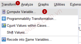 Tiếp theo, chúng ta tạo biến tương tác (Interaction) bằng cách lấy tích số của ATT và BB ở dạng chuẩn hóa. Tại SPSS, vào Transform → Compute Variable…