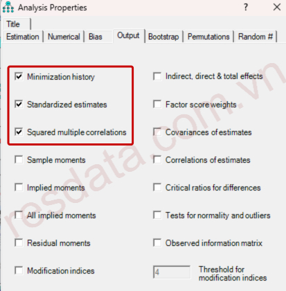 Cuối cùng, thiết lập các tùy chọn trong Analysis Properties tương tự như khi thực hiện phân tích SEM thông thường trên AMOS, sau đó tiến hành chạy mô hình.